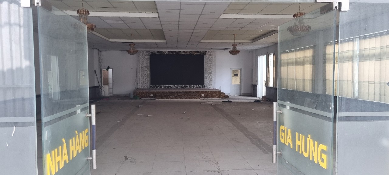 Hiện trạng đã xây dựng kiên cố, lát gạch men, trần thạch cao, đèn chùm, sân khấu ... phù hợp làm Showroom, văn phòng, cửa hàng, nhà hàng, tổ chức sự kiện.